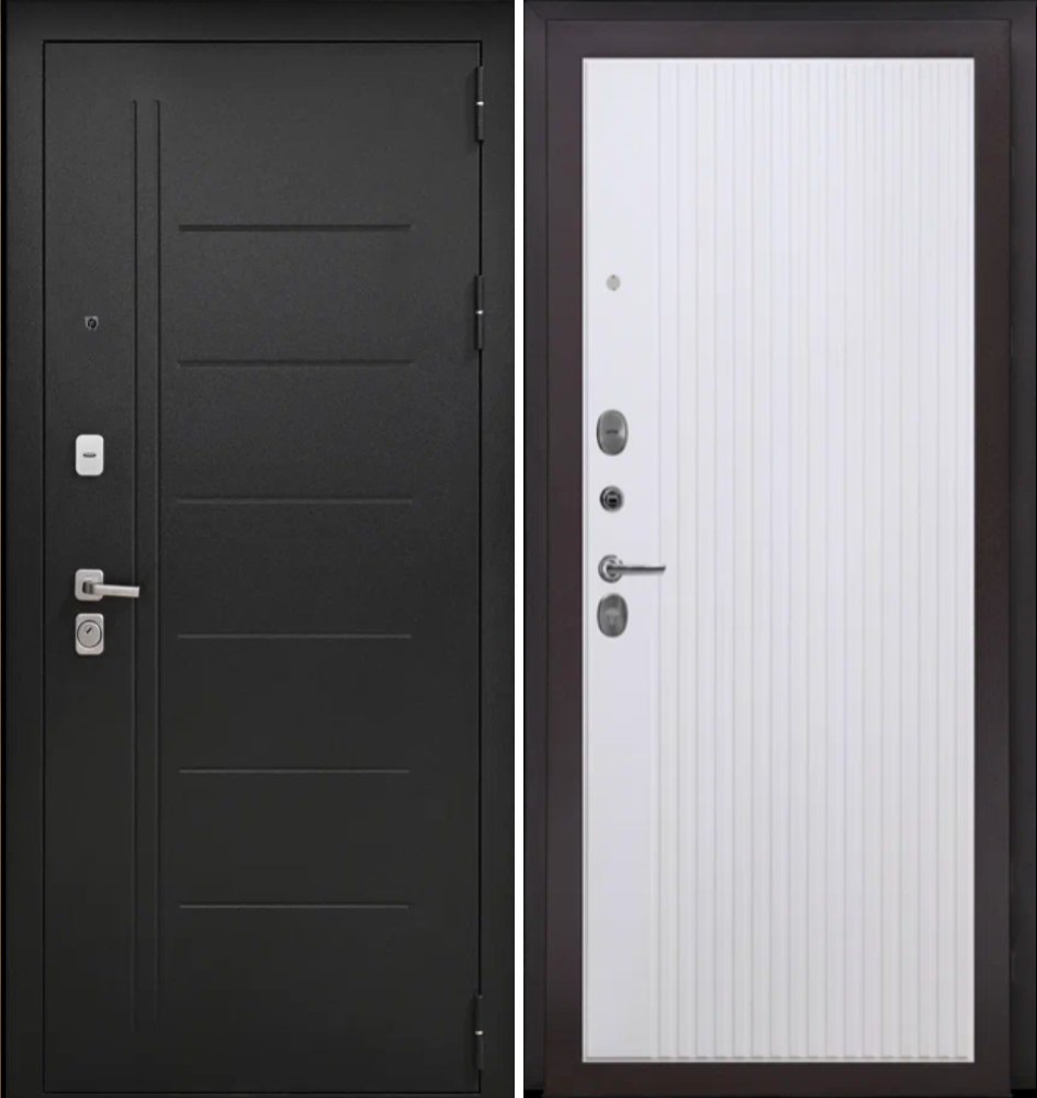 дверной глазок, ночная задвижка, порог из нержавеющей стали, фурнитура матовый хром прямоугольная, 17 серия, декоративные накладки с защитой от продувания, комплект ключей.